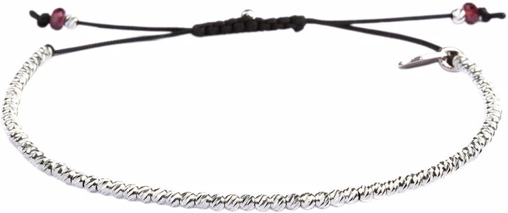 Very beautiful tiny bracelet with sparkling beads and Red Garnet stone on Black Cord – made in Denmark