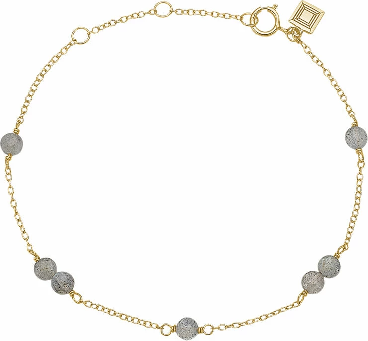 Det betagende armbånd i guldbelagt sterling sølv er fremstillet med smukke viklinger og er sat med labradorit. Armbåndet måler 16+1,5+1,5cm. Armbåndet tilhører den ikoniske Gem Candy kollektion, der byder på helt unikke kombinationer af farverige ædelsten i et væld af slibninger.