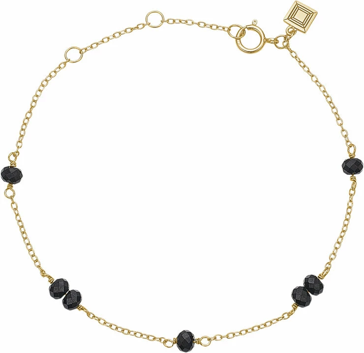 Det betagende armbånd i guldbelagt sterling sølv er fremstillet med smukke viklinger og er sat med sort spinel. Armbåndet måler 16+1,5+1,5cm. Armbåndet tilhører den ikoniske Gem Candy kollektion, der byder på helt unikke kombinationer af farverige ædelsten i et væld af slibninger.