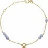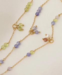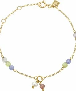 Armbånd i guldbelagt sterling sølv sat med labradorit, hvid ferskvandsperle, pink spinel, tanzanit og peridot. Armbåndet måler 16+1,5+1,5cm. Armbåndet tilhører Gem Candy kollektionen, der byder på unikke kombinationer af farverige ædelsten i et væld af slibninger.