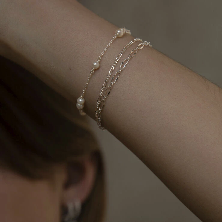 Det betagende armbånd i sterling sølv er fremstillet med smukke viklinger og er sat med hvide ferskvandsperler. Armbåndet måler 16+1,5+1,5cm. Armbåndet tilhører Carré Archive kollektionen, der indeholder et væld af klassiske Carré smykker sat med farverige ædelsten.