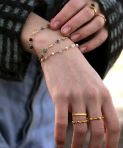 Det farverige armbånd i guldbelagt sterling sølv er fremstillet med smukke viklinger og er sat med kyanit, labradorit, grøn agat og citrin. Armbåndet måler 16+1,5+1,5cm. Armbåndet tilhører den ikoniske Gem Candy kollektion, der byder på helt unikke kombinationer af farverige ædelsten i et væld af slibninger.