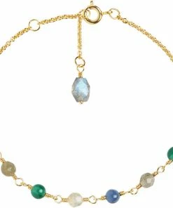 Det farverige armbånd i guldbelagt sterling sølv er fremstillet med smukke viklinger og er sat med kyanit, labradorit, grøn agat og citrin. Armbåndet måler 16+1,5+1,5cm. Armbåndet tilhører den ikoniske Gem Candy kollektion, der byder på helt unikke kombinationer af farverige ædelsten i et væld af slibninger.