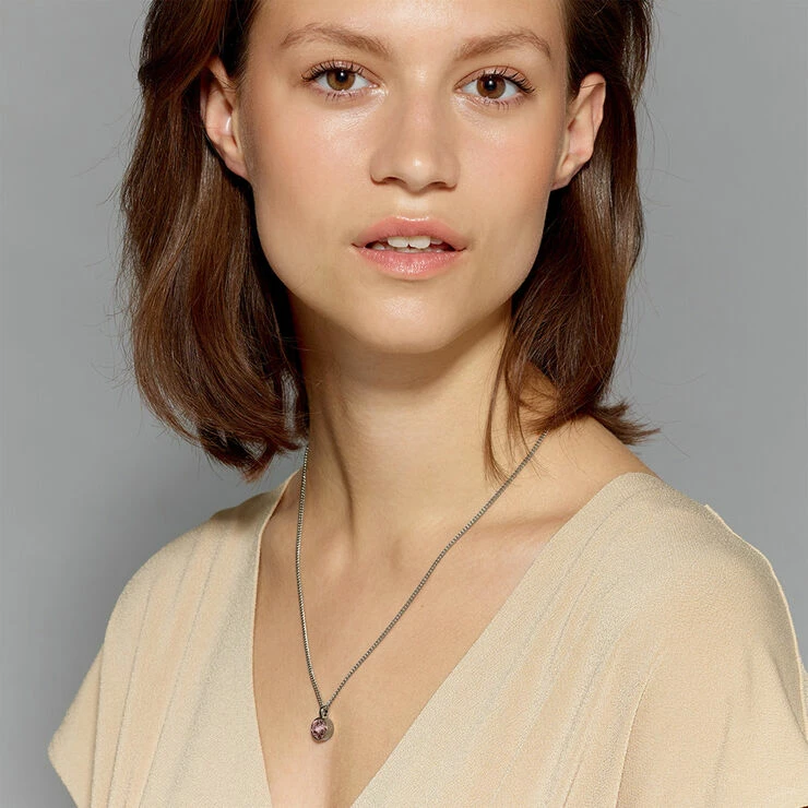 ETTE – denne smukke og enkle halskæde med en større swarovski solitaire krystal er både chic og sexet. Den fanger lyset og gør din halsudskæring til et point of attaction- som man siger! Kæden er 50 cm lang og kan yderligere forlænges lidt. Fokus på denne kæde er og bliver den smukke krystal, der er isat i hånden. Kæde og vedhæng er skabt i stål og har fået en teknisk forgyldning. Her vist i fantastisk gammelrosa og sølvtonet version. Dansk design, nikkelfri og allergitestet.