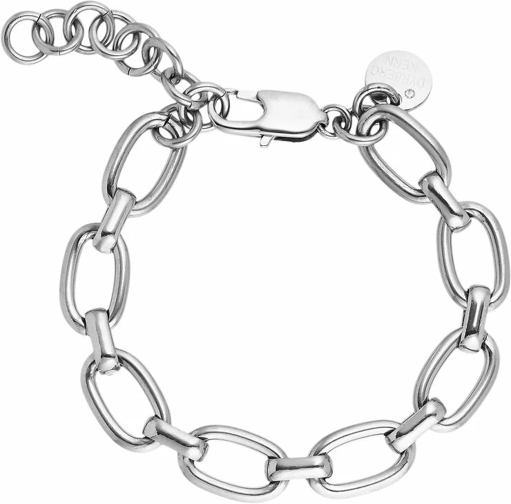 JAM / B – En anden klassiker er det fede lænkearmbånd, der vare er råt og cool på samme måde. Vi elsker disse typer enkle smykker, og vi synes en lænke er fed at bære alene, eller sammen med andre cool armbånd. JAM /B er produceret i poleret stål, der er enkelt og kun forsynet med en Swarovski besat DYRBERG KERN tag, fed karabinlukning, længde er 16 cm med mulighed for forlængning. JAM kæden passer til. Nikkelfri, allergistestet og dansk DYRBERG KERN design.