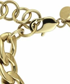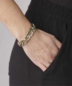 JAZZ/ B – En anden klassiker er det fede lænkearmbånd, der vare er råt og cool på samme måde. Vi elsker disse typer enkle smykker, og vi synes en lænke er fed at bære alene, eller sammen med andre cool armbånd. JAZZ/B er produceret i guldtonet poleret stål, der er enkelt og kun forsynet med en Swarovski besat DYRBERG KERN tag, fed karabinlukning, længde er 16 cm med mulighed for forlængning. JAZZ kæden passer til. Nikkelfri, allergistestet og dansk DYRBERG KERN design.