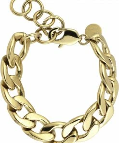 JAZZ/ B – En anden klassiker er det fede lænkearmbånd, der vare er råt og cool på samme måde. Vi elsker disse typer enkle smykker, og vi synes en lænke er fed at bære alene, eller sammen med andre cool armbånd. JAZZ/B er produceret i guldtonet poleret stål, der er enkelt og kun forsynet med en Swarovski besat DYRBERG KERN tag, fed karabinlukning, længde er 16 cm med mulighed for forlængning. JAZZ kæden passer til. Nikkelfri, allergistestet og dansk DYRBERG KERN design.