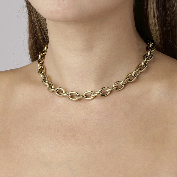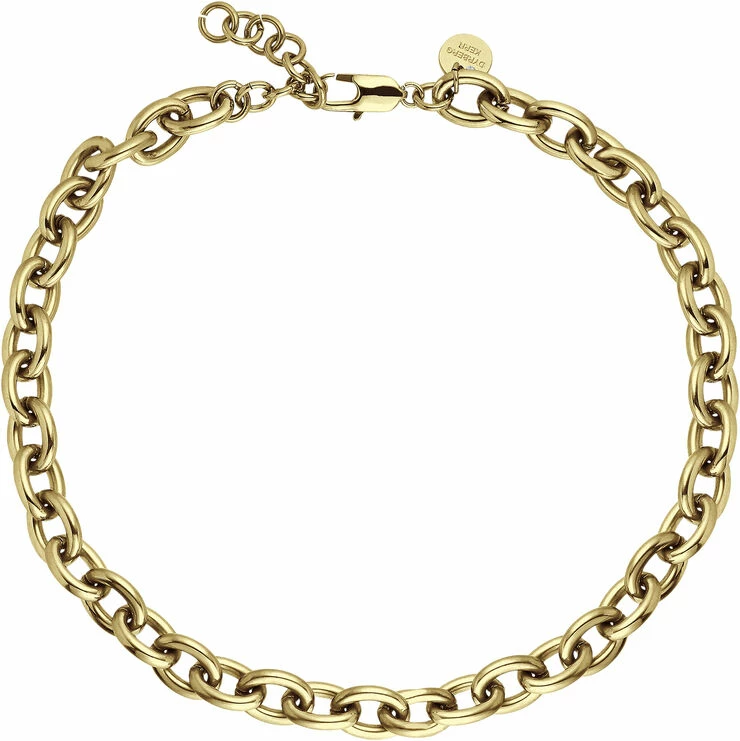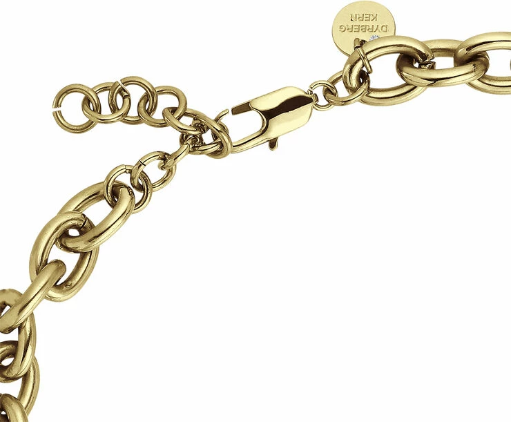 PACE – Den fede korte halslænke er råt og cool og sexet – lidt punk, og samtidigt klassisk. Vi elsker disse typer enkle smykker, og vi synes en fed halslænke er skøn alene, eller måske sammen med et andet halssmykke lag på lag. PACE er produceret i poleret guldtonet stål, der er enkelt og kun forsynet med en Swarovski besat DYRBERG KERN tag, fed karabinlukning, længde er 40 cm med mulighed for forlængning. PACE/ B armbåndet passer til. Nikkelfri, allergistestet og dansk DYRBERG KERN design.