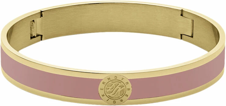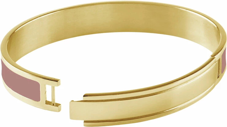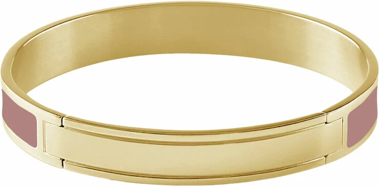 PENNIKA – enkel, moderne, classy. Dette polerede stålarmbånd med ilagt resin emalje indlæg er en klassiker i vort sortiment og vi har det i flere farver. Kun dekoreret med et diskret monogram på fronten og en stribe farvet emalje fremstår dette armbånd elebgant og tidløst. Til kvinden uden alder. Armbåndet åbnes let ved et let tryk på den diskretet fjederlås bagtil. Fåes i to str. Her vist i guldtonet finish og rosa emalje.