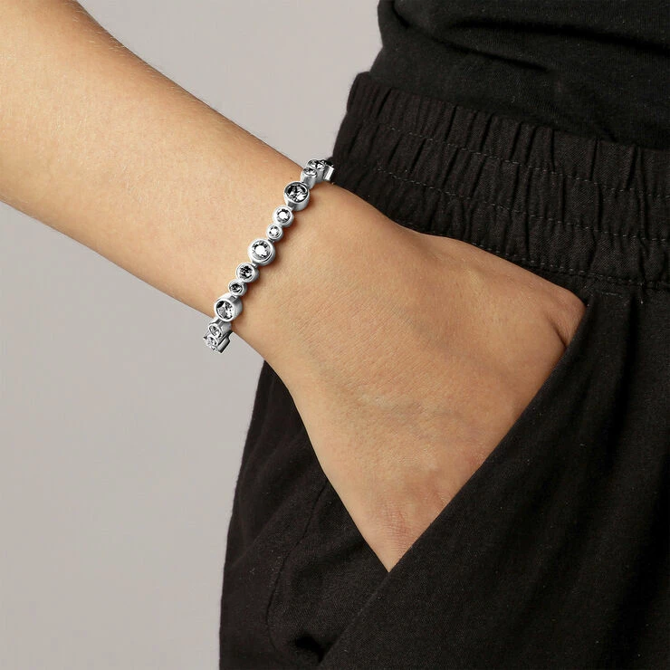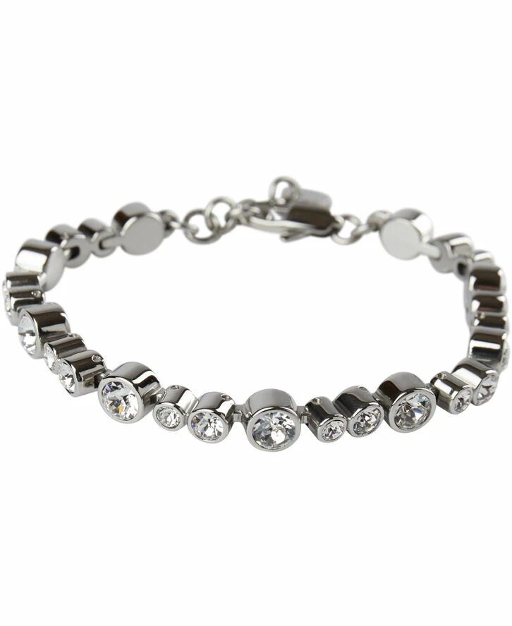 Superchikt og feminint tennisarmbånd i stainless steel med swarovski elements.