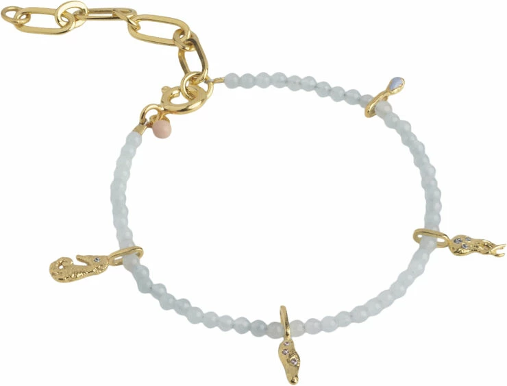 Om smykket- Vores Bahama armbånd findes med to forskellige slags perler, koral farvede og aquamarine blå. Bahama armbåndende er farverige og glade at se på. Står det for sig selv er det en legende detalje på den sommerbrune arm og kombinerer du det med andre, mere simple smykker, får du et flot og elegant armbånd, der tilføjer farve til dine andre smykker. Bahama findes også som halskæde.
