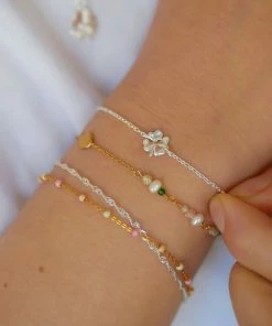 Om smykket- Organisk og fint kløverarmbånd med smagfulde detaljer. Firkløveren er et gammelt symbol på lykke, og bringer held til den der bærer den. Vores kløverarmbånd er til dig, der elsker symbolik og affektionsværdi i smykker, og ønsker at give eller eje et smykke, der aldrig mister sin betydning. Der er også matchende ørestikker og halskæde.