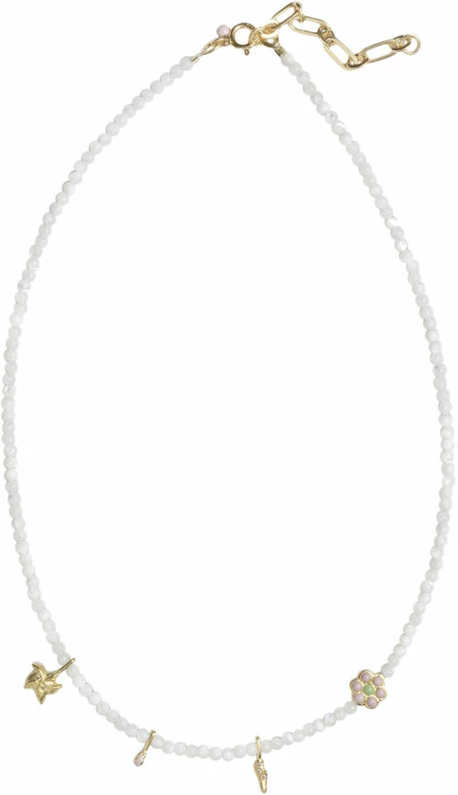 Om smykket- Navnet siger det hele. Aruba necklace er en sommerlig og eksotisk perlehalskæde, med skønne farver og et charmerende, naturligt udtryk. Arubas afslappede look og elegante hvide perler, er oplagt at tage på til en luftig sommerkjole. Aruba halskæden findes også som armbånd.