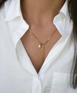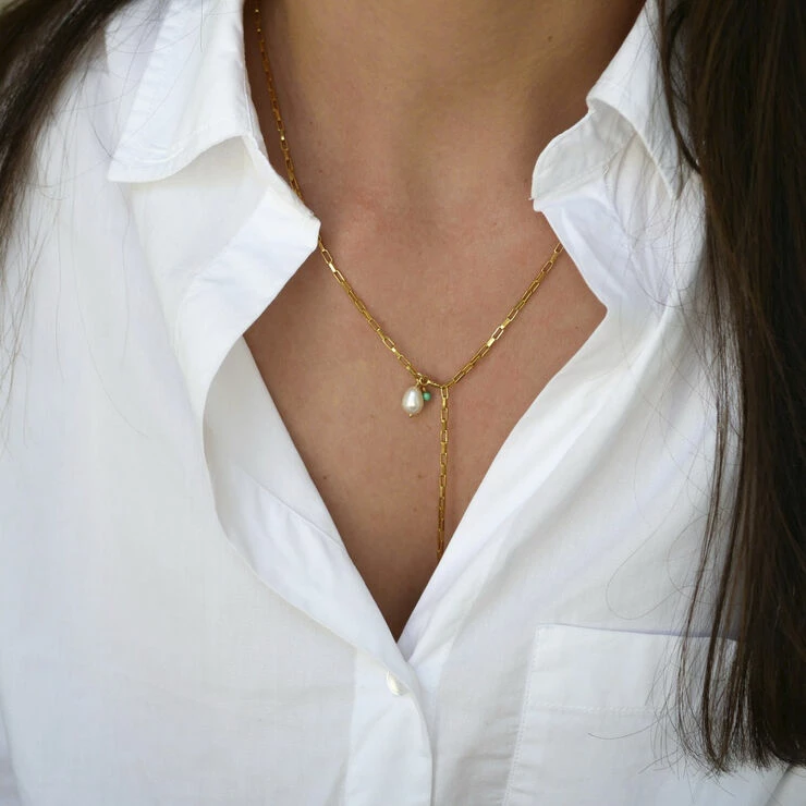Om smykket: Vores Azra halskæde er en ny og unik style, der med sin grove kæde er kombineret med en elegant ferskvandsperle og en farvet emaljekugle. Halskæden er justerbar, hvilket vil sige, at du kan tilpasse den lige netop den længde du ønsker.