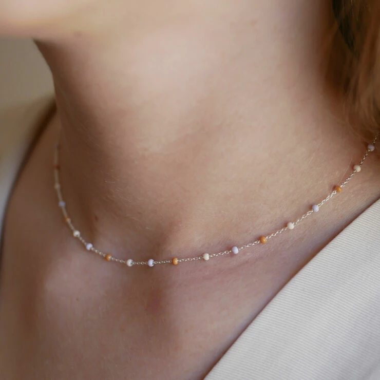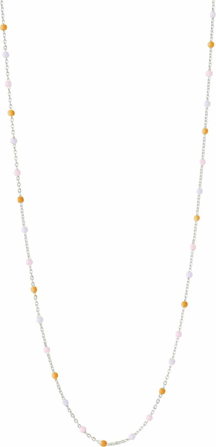 Om smykket- Vores Lola halskæde er en skøn og farverig kæde med små emaljerkugler. Halskæden giver en skøn detalje og kan perfekt kombineres med andre fine halskæder. Obs- Vær opmærksom på IKKE at bære vores Lola styles i bad, når du sover og for tæt på parfumer og cremer, da emaljen kan ændre farve og struktur. __________