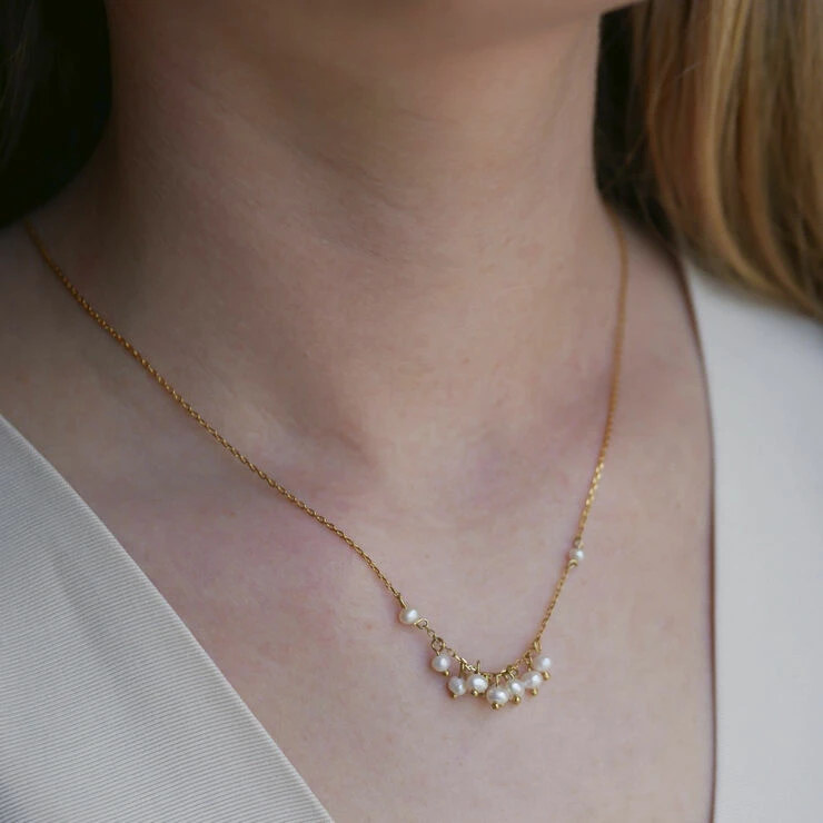 Om smykket- Smukkeste Ophelia necklace er en skøn og sommerlig style der med sine mange små og unikke ferskvandsperler giver den fineste detalje til ethvert outfit. Ophelia står både smukt alene, men kan også kombineres med andre fine øreringe. __________