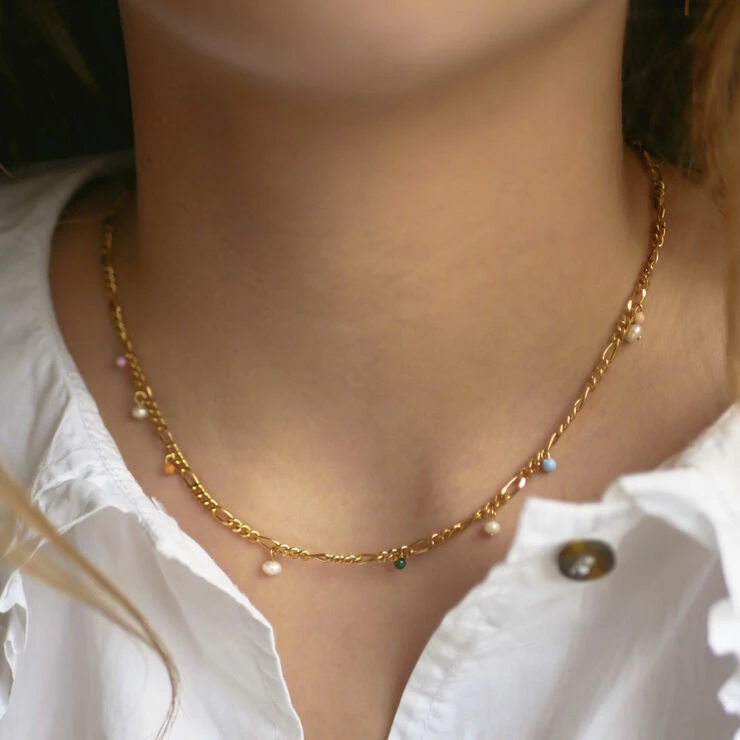Om smykket- Vores smukke Willa Necklace er en lidt chunky forgyldt og farverig kæde med små detaljer af fine hvide perler og farvet emalje. Halskæden giver dit outfit et ekstra touch og kan også kombineres med andre af vores farverige halskæder. ____________
