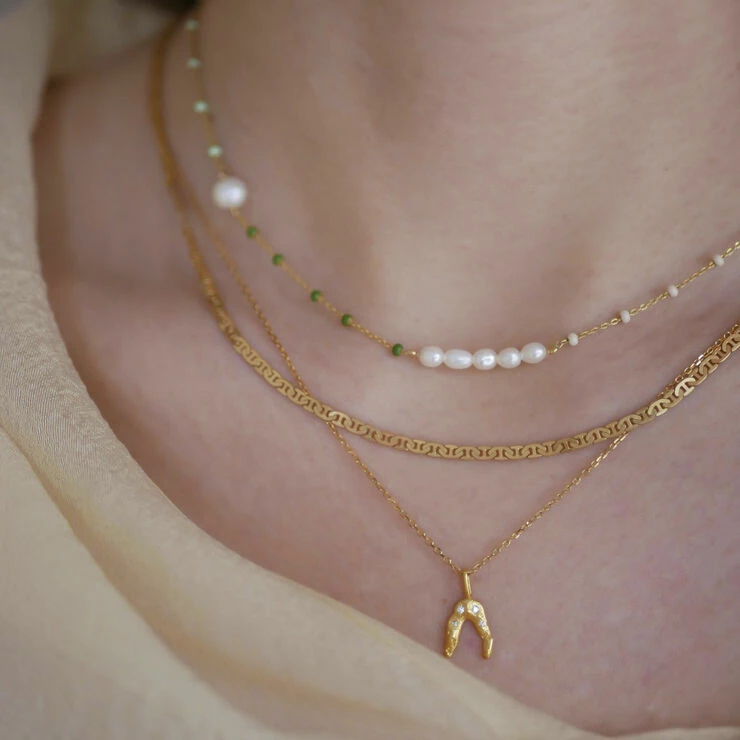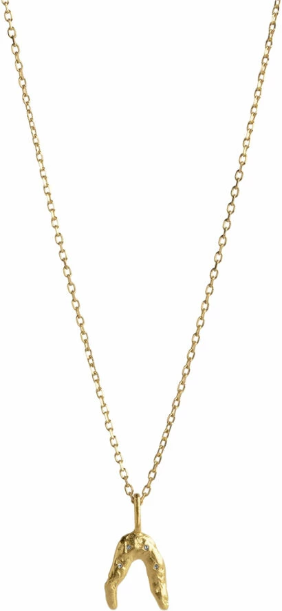 Om smykket- I vores Wishbone serie har vi valgt at lege med det hÃ¥ndlavede og mere realistiske udtryk, for at tilføje personlighed og charme til dette klassiske men betydningsfulde symbol â nemlig ønskebenet. Wishbone halskæden har et ligesÃ¥ unikt udseende som dens betydning. Vedhænget er sat pÃ¥ en lang kæde og det er muligt at tage det af og mÃ¥ske bruge pÃ¥ en hoop eller tilføje en af vores andre vedhæng.