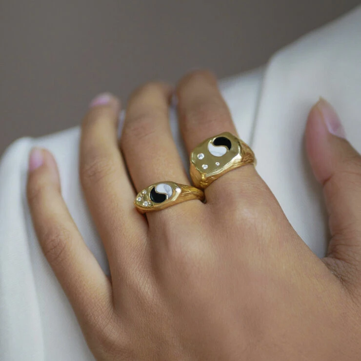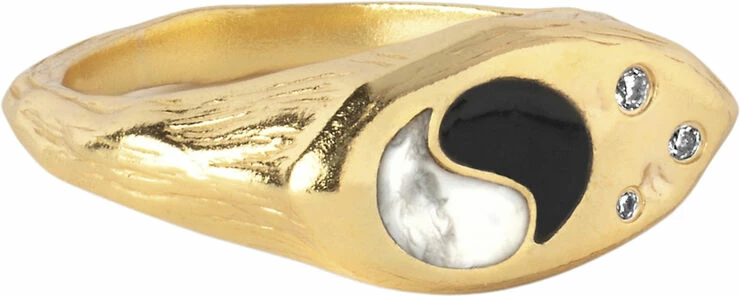 Om smykket- Yin Yang er en smuk og elegant ring sammensat af 18 karat sterling sølv, sort agat og marmoreret howlite samt tre glitrende zirkoner. Yin og Yang illustrerer at vi sammen skaber en uadskillelig helhed og er derfor en perfekt gave til både dig selv eller til en du har kær. __________