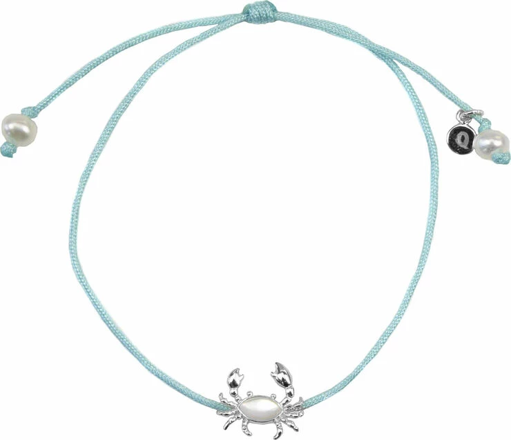 Bracelet. Sterling silver with a mother of pearl on a light blue cord. Length: 15 cm + 3 cm flex