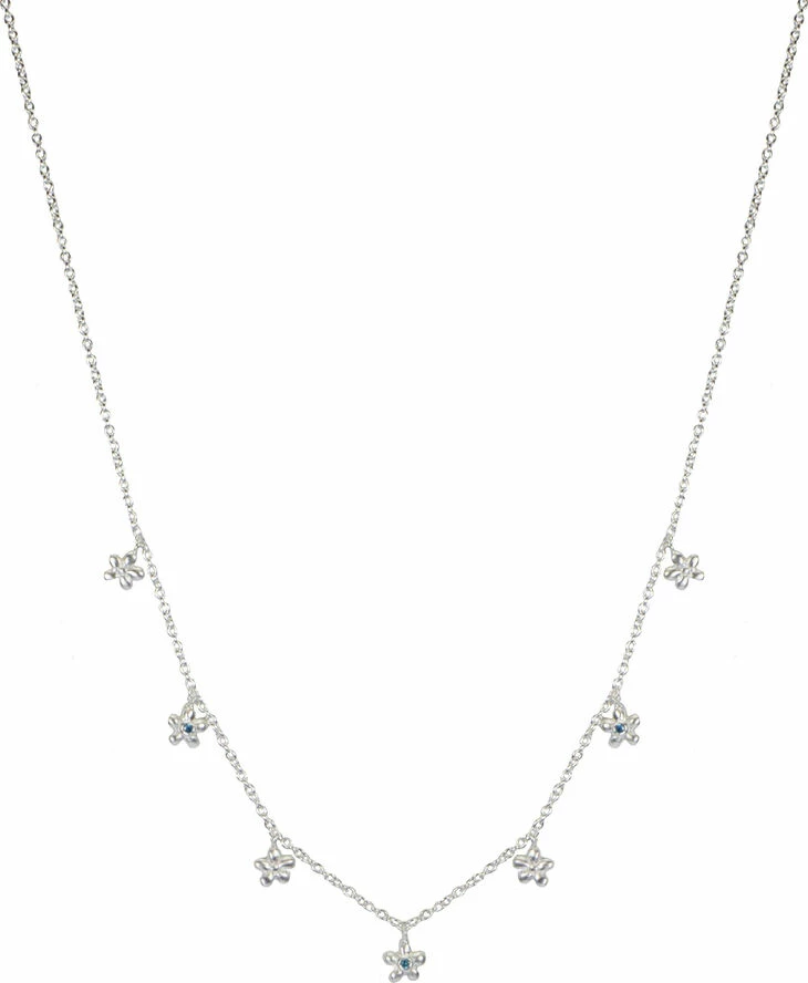 Necklace. Sterling silver with blue cubic zirconia. Length: 40 cm + 5 cm flex