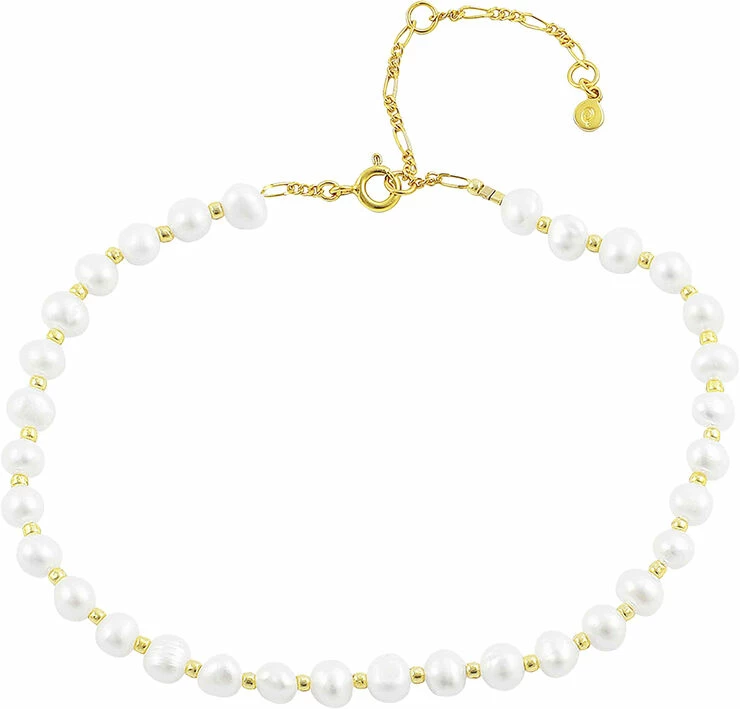 Arabella ankelk¾de er en klassisk perle ankelk¾de med sm forgyldte perler imellem hver perle hver ferskvandsperle. Det er simpelt, elegant og smukt. Kvalitet: 18K forgyldt sterling s¿lv. Ml: 23 cm + 5 cm flex.