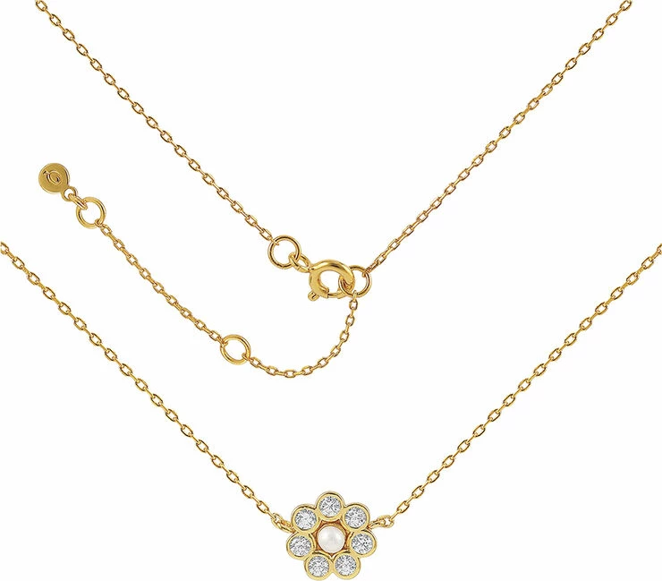 Sterling sølv forgyldt med 18 karat guld, cubic zirconia og ferskvandsperle. Længde: 35 cm + 5 cm flex