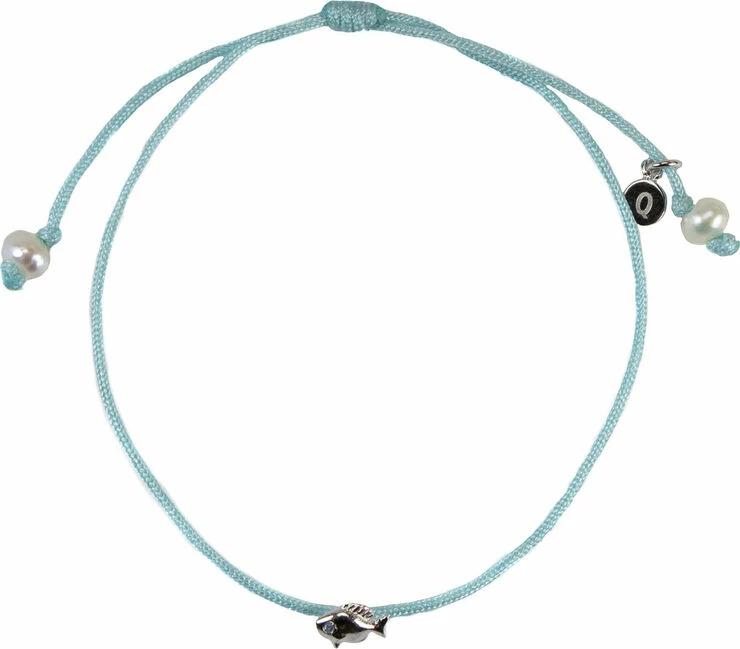 Bracelet. Sterling silver pendant with a blue cubic zirconia on a light blue cord. Length: 15 cm + 3 cm flex