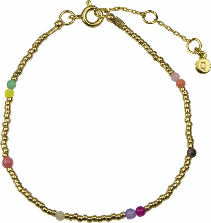 Bracelet. 18K gold plated sterling silver with coloured beads. Length: 15 cm + 3 cm flex