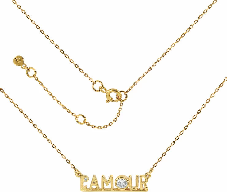Sterling sølv forgyldt med 18 karat guld og cubic zirconia. Længde: 41 cm + 5 cm flex