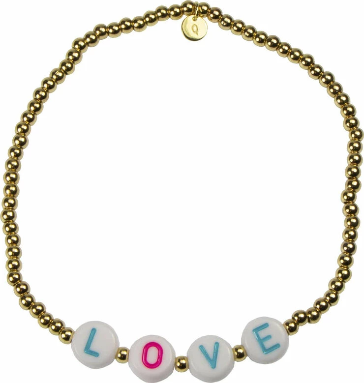 Bracelet. 18K gold plated sterling silver with coloured miyuki beads on elastic band. Adjustable