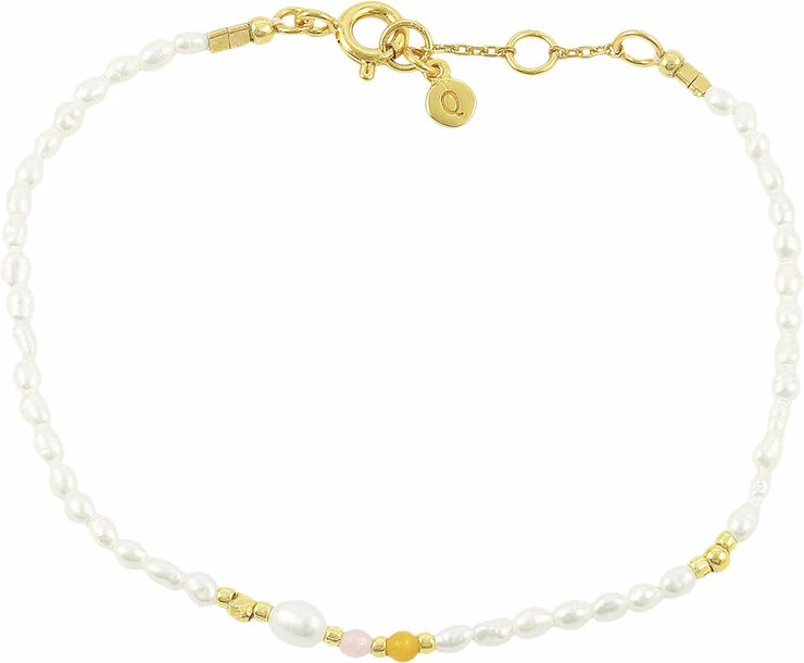 The Olivia bracelet are made up of small freshwater pearls and coloured beads. Quality: 18K gold plated sterling silver. We have applied 1 micron and e-coating to make the gold plating last. Dimensions: 16 cm + 3 cm flex
