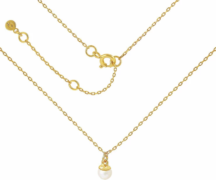 Sterling sølv forgyldt med 18 karat guld og ferskvandsperler. Længde: 38 cm + 5 cm flex