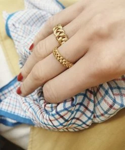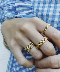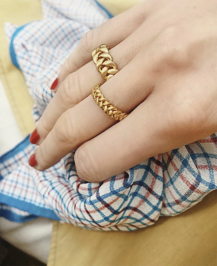 Stor fletring i mat, forgyldt sterlingsølv. Ringen måler 6 mm i bredden og består af tre tråde, som snor sig smukt i et flet og skaber et elegant og klassisk look. Den store fletring kan, i samspil med andre Jane Kønig ringe, give kant til dit look og fungere som det perfekte statement smykke. B: 6 mm