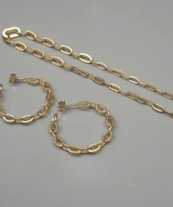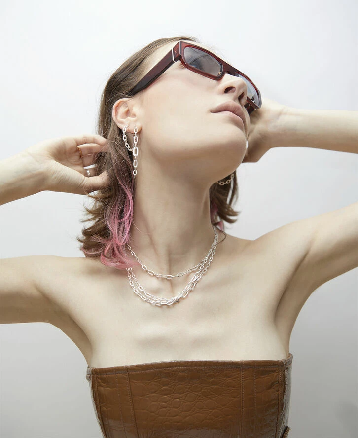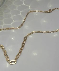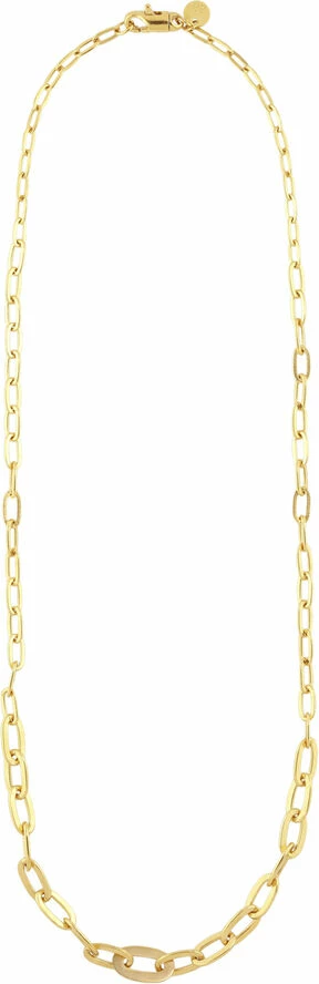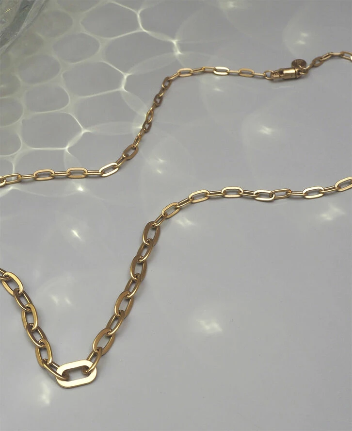 Row halskæde i 18K forgyldt sterling sølv med lænker i forløb måler 45 cm. Kædens unikke unisex design får den på en og samme tid til at fremstå super rå og virkelig elegant, hvorfor den også kan bæres af alle.