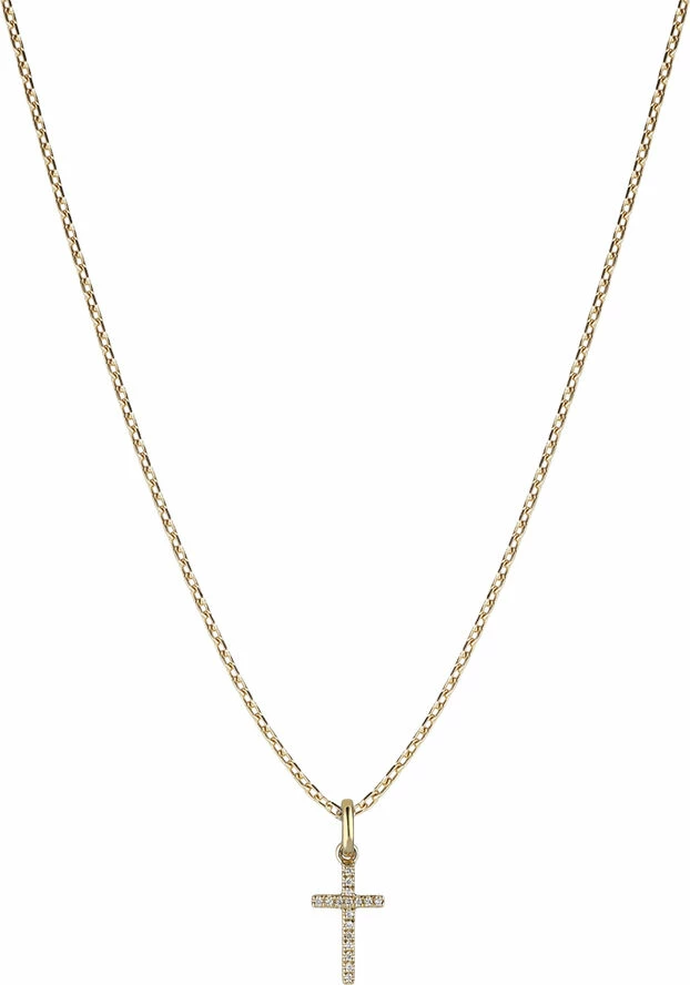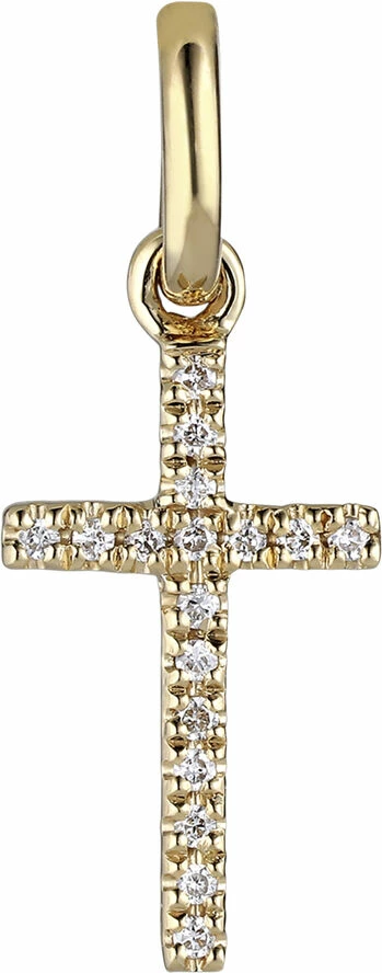 Kors vedhæng med brillanter i 18 karat guld. Vedhænget måler 7 mm i bredden og 10 mm i længden og består af 17 brillanter, i alt 0,04 ct. Designet er elegant og klassisk, hvilket gør det til en tidløs detalje til din kæde. Korset kan bære på en særlig betydning og er fin som en personlig gave til en særlig lejlighed. B 7 mm L 10 mm