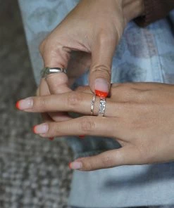 Small Reflection ring i 18 karatforgyldt sterlingsølv med tynde vandrette elegante prægninger. Small Reflection ring måler 1,5 mm. i bredden. En klassisk smal ring kan man simpelthen aldrig få for mange af, og denne skønne ring bør klart tilføjes en hver smykkesamling. Ringens smukke og simple design gør, at den sagtens kan bæres alene. Vælger du at stacke den med andre Jane Kønig ringe, kan du opnå et mere cool og glamourøst look.