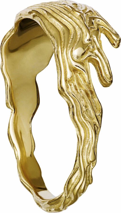 Lavanias overflade flyder over fingeren som gyldent lava, der tilfældigt og smukt smelter sig vej gennem et landskab i tykke, organiske bølgebevægelser.<br><br>Maanestens SS22 kollektion er inspireret af alle de organiske former, der findes omkring os, og de kreative energier, de giver beskueren. Kollektionen, Surrounding Shapes, hylder håndværket og er som alle Maanestens smykker håndlavet på eget værkssted i Jaipur, Indien.<br><br>Materialer: genanvendt sterling sølv (925) belagt med 18 karat guld