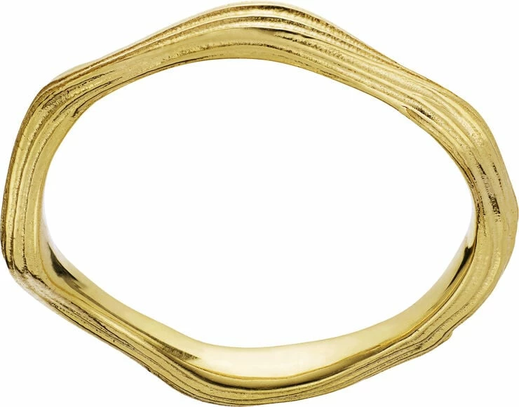 Rita er en enkel ring, der kan bruges alene eller giver mulighed for skabe nye, unikke udtryk i samspil med flere ringe. Den spinkle ring har et organisk, bugtet formsprog og en bølgende overflade, der gør, at den tager sig forskelligt ud fra alle vinkler. <br><br>Maanestens SS22 kollektion er inspireret af alle de organiske former, der findes omkring os, og de kreative energier, de giver beskueren. Kollektionen, Surrounding Shapes, hylder håndværket og er som alle Maanestens smykker håndlavet på eget værkssted i Jaipur, Indien.<br><br>Materialer: genanvendt sterling sølv (925) belagt med 18 karat guld