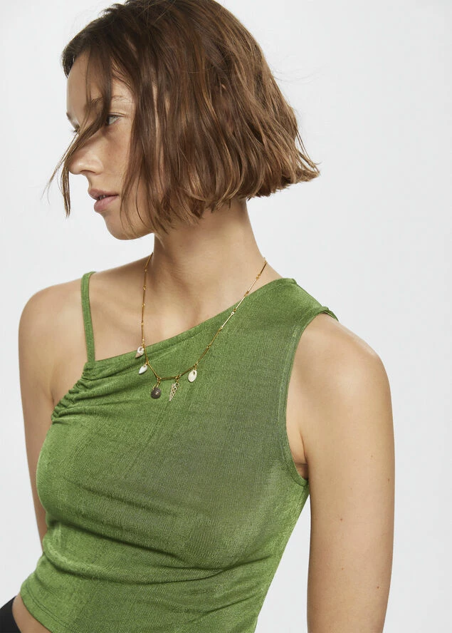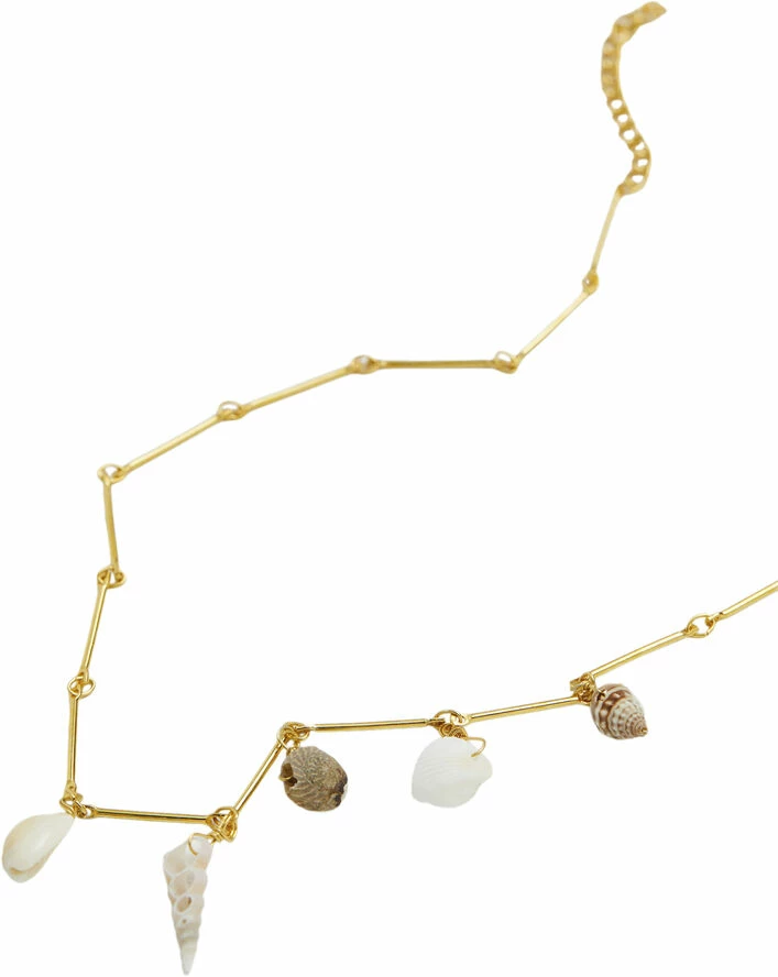 Shell ornament, chain design, combined design, carabiner fastening, swimwear collection.