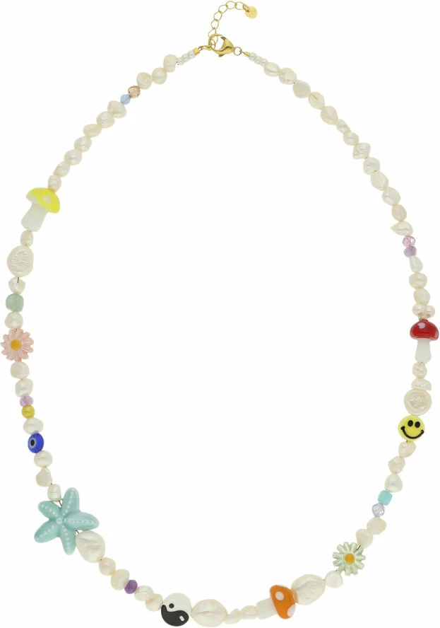 18k gold plated sterling silver, Fresh water pearl, Glas beads, Zirconia - Brand: