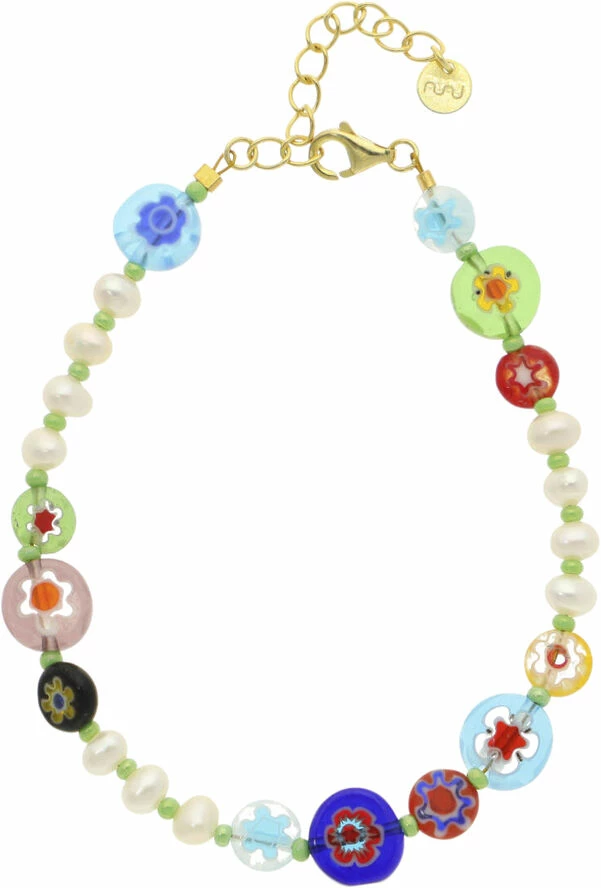 Hndlavet armbnd med Ferksvandsperler, Glasperler og forgyldt sterling s¿lv