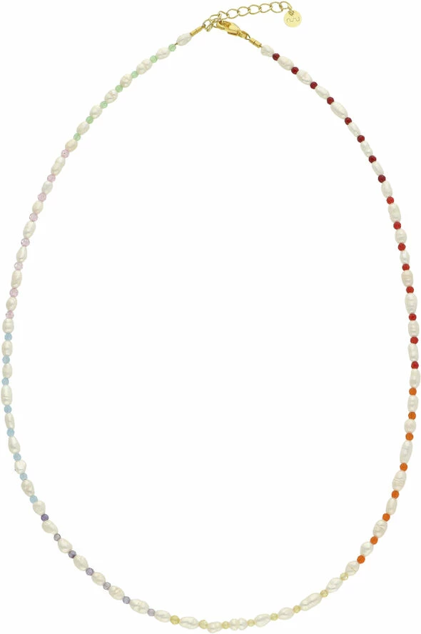 Smuk hndlavet halsk¾de 18k forgyldt sterling s¿lv med ferksvandsperler og Zirkoner