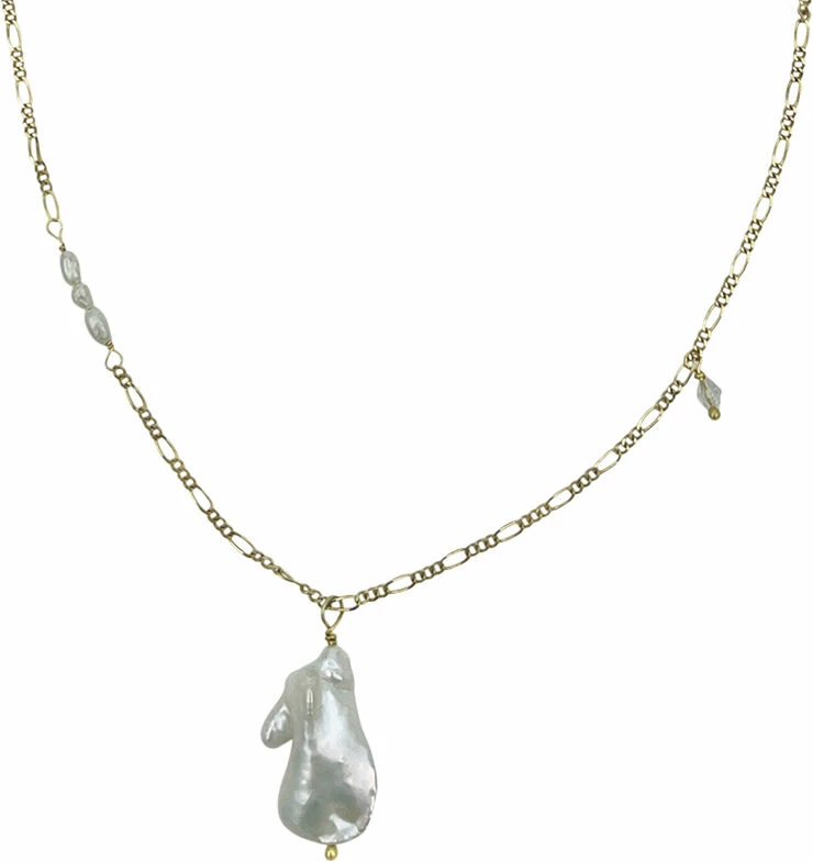Smuk hndlavet halsk¾de 18k forgyldt sterling s¿lv med Barok ferksvandsperle