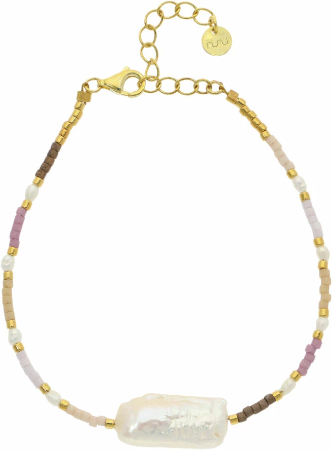Hndlavet armbnd med Ferksvandsperler, Barok ferskvandsperle, glasperler og forgyldt sterling s¿lv