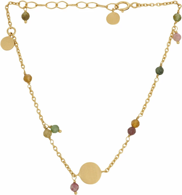 Armbånd med små mønter og sten i smukke pastel farver. Str: 15-18 cm, justerbar. Sten: Rainbow Turmalin