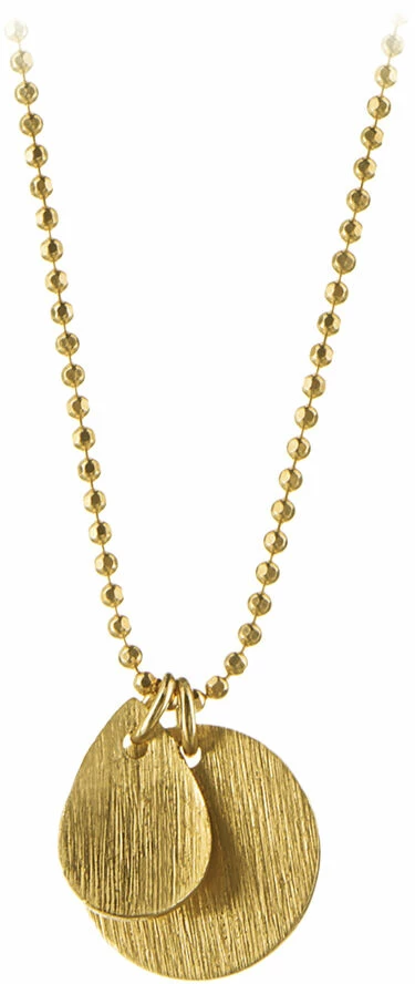 Berlins rå udtryk kombineret med bløde runde cirkler som kontrast, er grundlaget for mange af Pernilles kollektioner. Mønt og dråbe i smuk facetslebet kugle halskæde, som glitre. Brug den også som en kort kæde ved at vikle den to gange rundt om halsen.