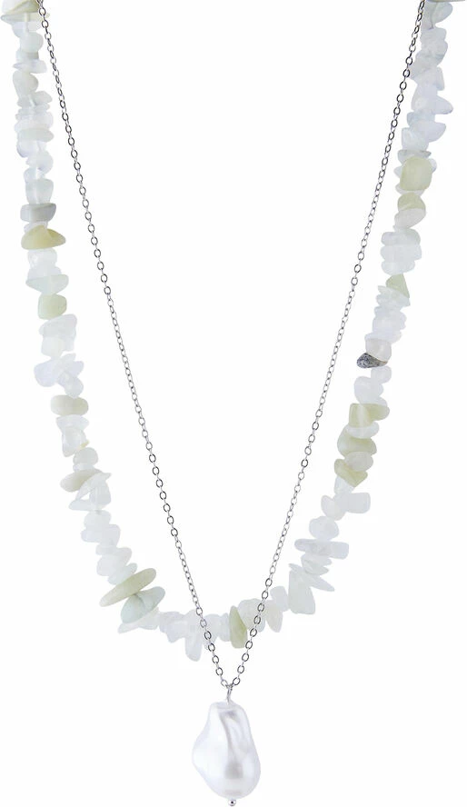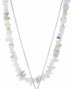 LADIES NECKLACETWO CHAINSONE CHAIN WITH COLORED CRYSTAL LOOK BEADS