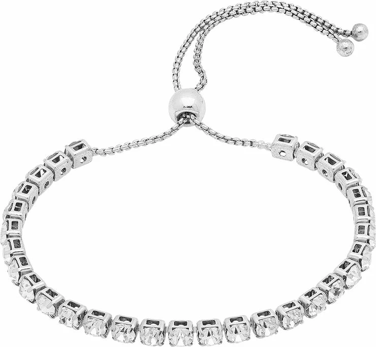 Find din indre diva frem med dette sølvbelagte armbånd med den endeløse række af funklende krystaller. Krystal-armbåndet emmer af elegance og eksklusivitet med sit smukke og klassiske design, der samtidig har fået et moderne og forfriskende tvist med den anderledes og moderne lukning, der kan tilpasses i størrelsen og understreger dit divalook.