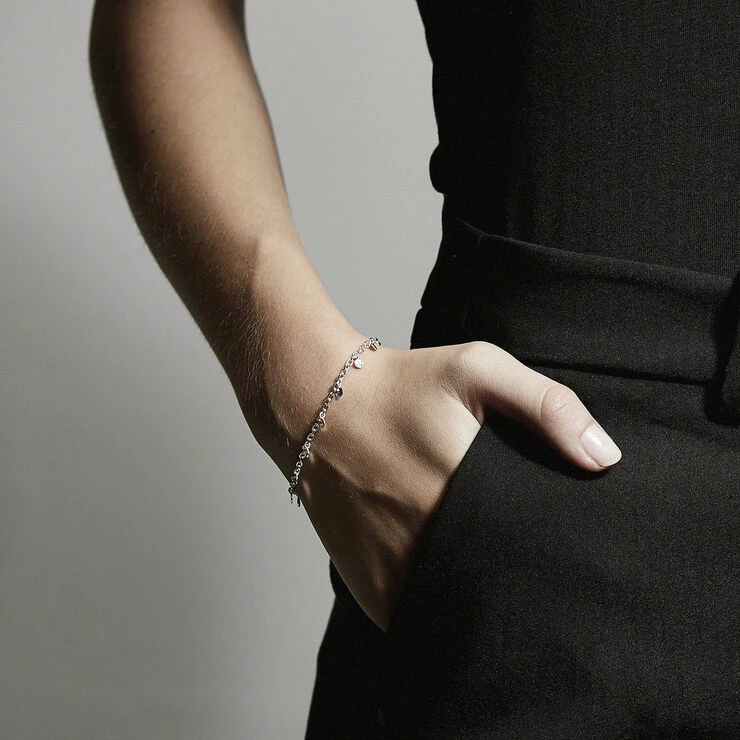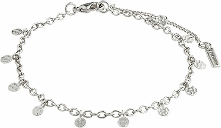 Sølvbelagt armlænke i delikat design med små blanke mønter langs kæden. En skøn klassiker, der har et let eksotisk strejf. Brug den alene til et afslappet outfit eller giv dit trendy lag-på-lag-look et feminint strejf med denne smukke armlænke fra Pilgrims charmerende Panna-serie.